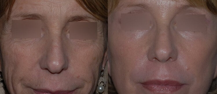 Pour les sillons nasogéniens, les sillons marqués sont comblés en profondeur, les rides du sourire et plis d'amertume s'atténuent, les volumes du visage se restaurent et l'ovale se redessine et se raffermit.